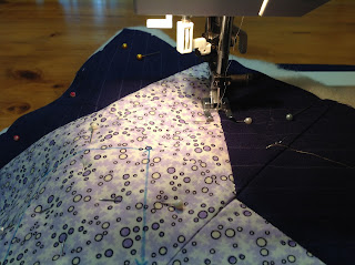 Firstly, I always mark my quilting designs on my quilt top. I use one of the temporary markers (such as this one for dark fabrics) to mark all of my quilting lines on the quilt top. For me this makes the quilting way less stressful. No I don't necessarily stay exactly on the lines, although I do try to stay as close as possible. When I'm done, the lines from this pen are removed with heat or washing.